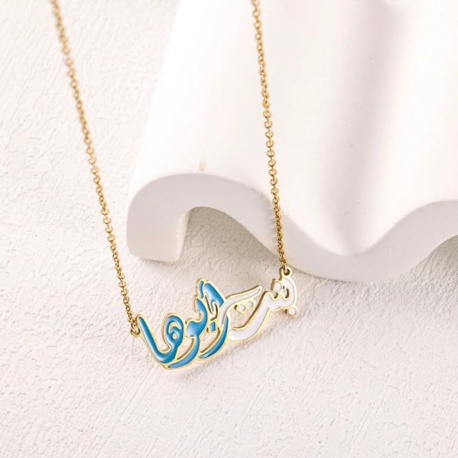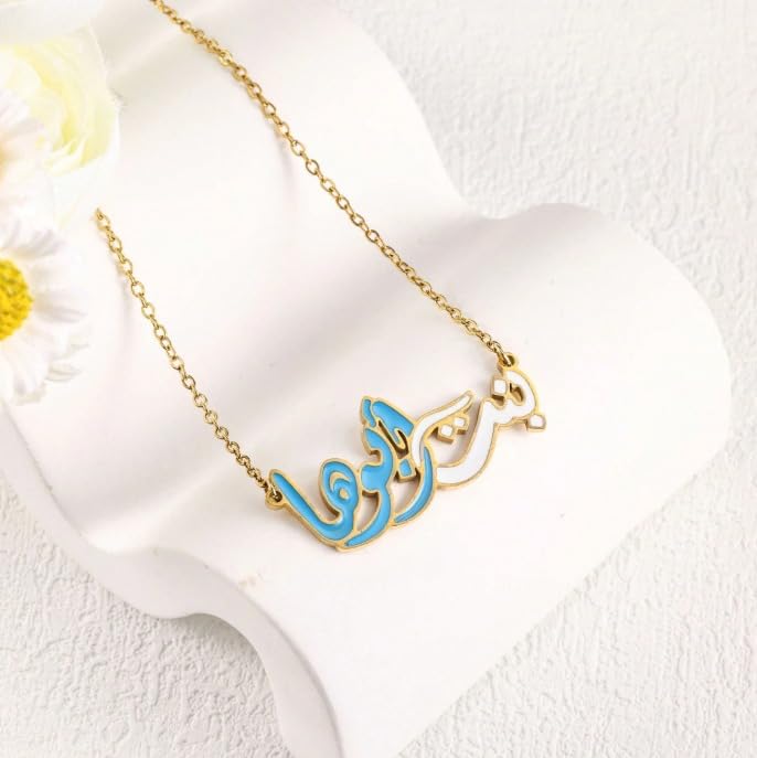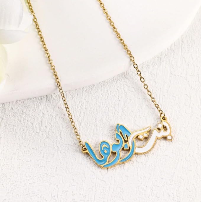 Generic - قلادة بنت أبوها تصميم عربي أنيق باللون الذهبي مع لمسة فيروزي ستانلس ستيل مقاوم للصدأ مناسبة للاستخدام اليومي