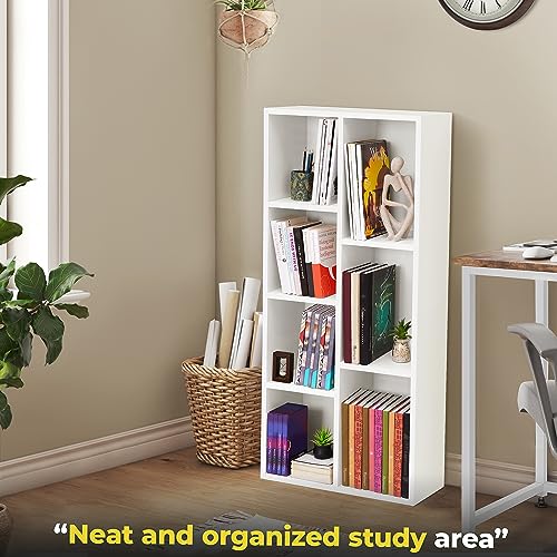 ABOUT SPACE - رف كتب من الخشب بتصميم هندسي متعدد الأغراض اباوت سبيس منظم تخزين مفتوح للمنزل والمكتب وغرفة الدراسة النوم المعيشة 7 مكعبات أبيض - الطول 49.5 سم × العرض 24 الارتفاع 1.1 متر