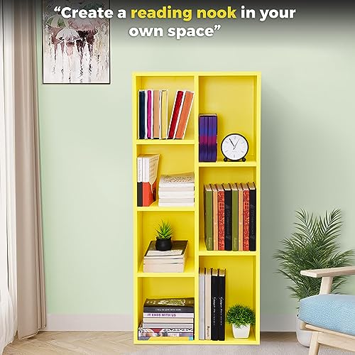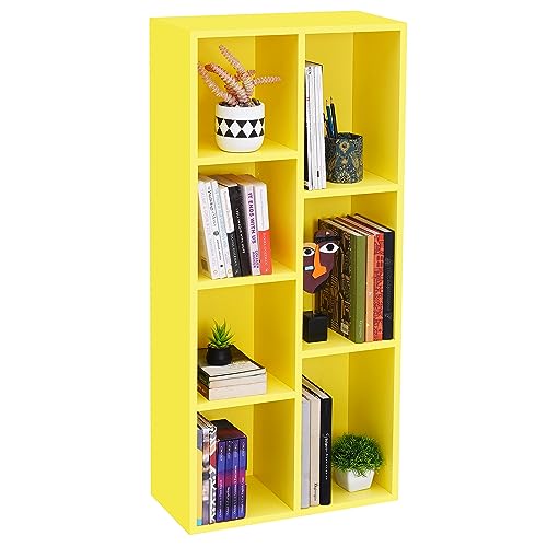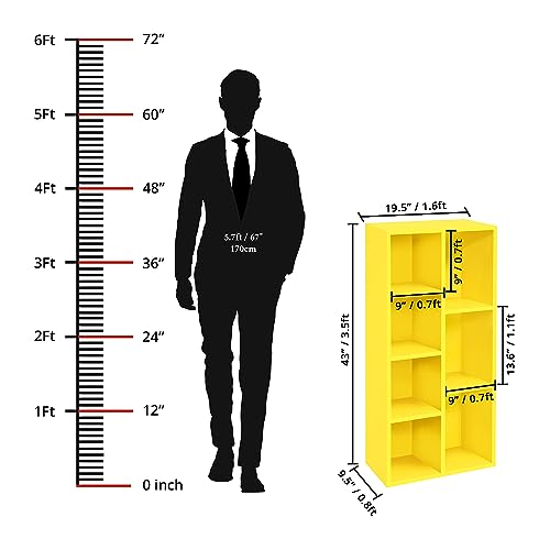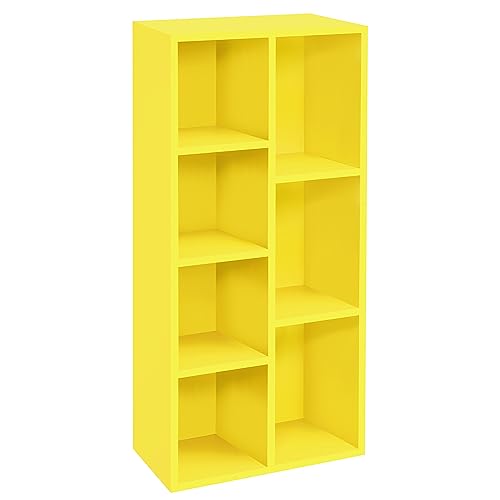 ABOUT SPACE - رف كتب من الخشب بتصميم هندسي متعدد الأغراض منظم تخزين مفتوح للمنزل والمكتب وغرفة الدراسة وغرفة النوم وغرفة المعيشة، من اباوت سبيس، لون أصفر، 7 مكعبات، الطول 49.5 سم × العرض 24 سم × الارتفاع 1.10 م