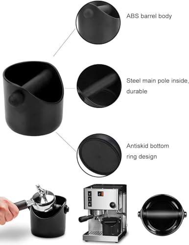 Liandliu - صندوق طحن قهوة من بلاستيك ايه بي اس، صندوق طحن قهوة اسبريسو لباريستا، صندوق متين ممتص للصدمات، صندوق قمامة لطحن القهوة والاسبريسو مع قضيب طرق قابل للفصل قابل للازالة وقاعدة مضادة للانزلاق