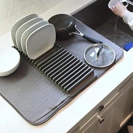 Generic - فرشة تصفية ماصة للمياه بخامة مايكروفايبر سميكة لتجفيف أواني المطبخ والأكواب مع منظم أطباق عملي ينظم مساحة المطبخ بسهولة ويمتص المياه بسرعة | من عام
