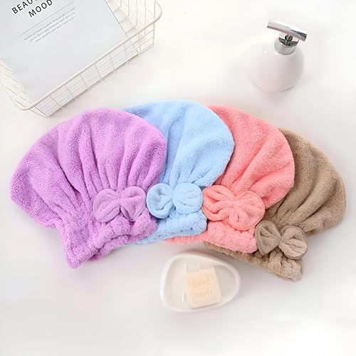 Generic - منشفة شعر ماصة - رداء سميك من المايكروفايبر لتجفيف الشعر السريع، مريح ولطيف للنساء والفتيات، لون بينك، عبوة من قطعتين