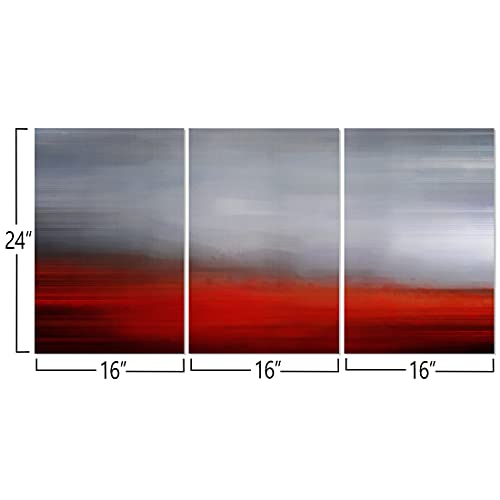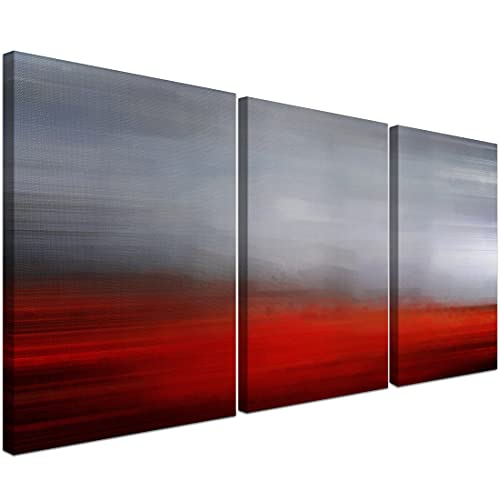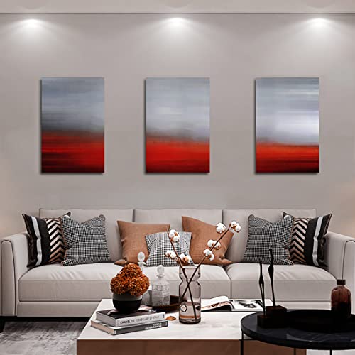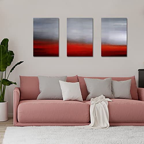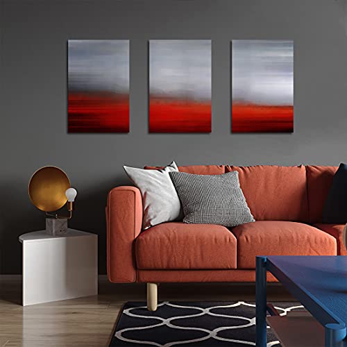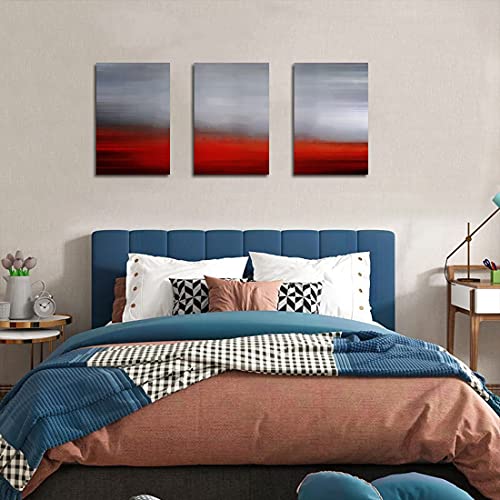 WOWGOOMO - لوحة فنية جدارية من القماش بتصميم تجريدي عصري باللونين الرمادي والاحمر، لوحة جدارية معاصرة لغرفة النوم وغرفة المعيشة والحمام والمكتب بطباعة جيكلي مقاس 16 انش × 24 انش × 3 قطع