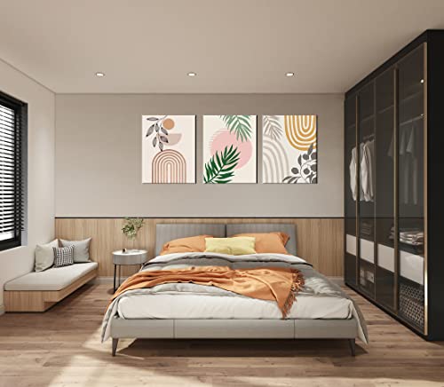 Lingula - لوحة ديكور حائط بتصميم بوهو بإطار تجريدي - 3 قطع من القماش نباتات خضراء ورمادية للشمس والقمر صور زهور طبيعية فني لغرفة النوم والحمام وغرفة المعيشة والمطبخ مقاس 30×40 سم جاهزة للتعليق