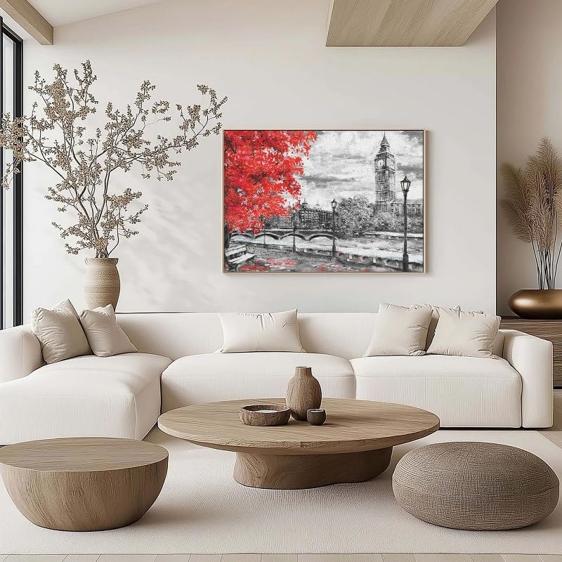 Home Gallery - بورتريه تجريدي بإطار بتصميم ساعة بيج بن وشجرة حمراء، 1.2 م × 80 سم