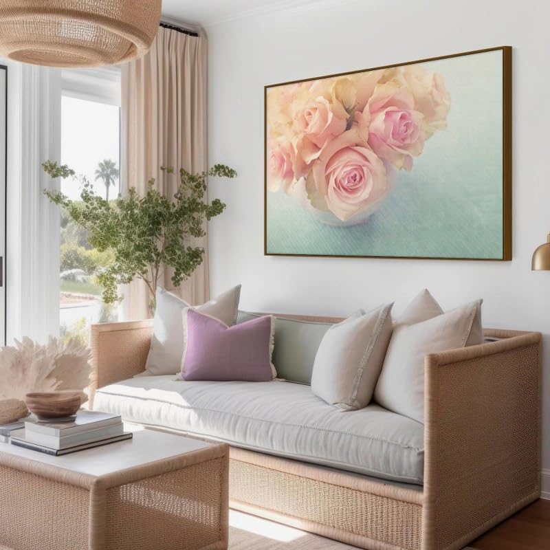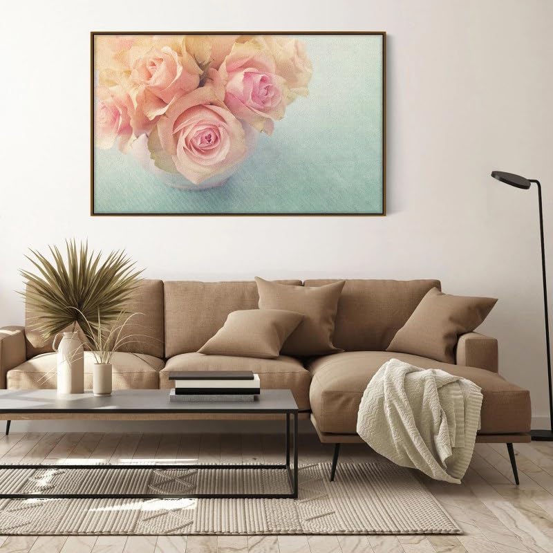 Home Gallery - لوحة فنية جدارية تجريدية بإطار لورود بيضاء في مزهرية، لوحة فنية مؤطرة مقاس 90×60 سم