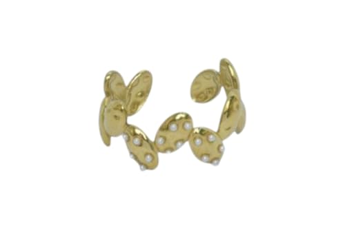 Generic - خاتم مفتوح من الستانلس ستيل بنمط اللؤلؤ التجريدي - ذهبي
