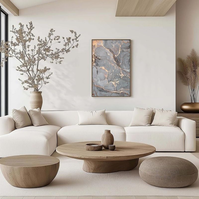 Home Gallery - لوحة فنية جدارية بتصميم رخامي تجريدي بلون رمادي، مقاس 90 × 60 سم