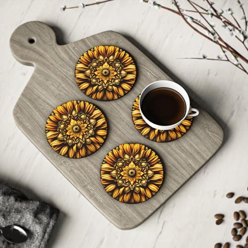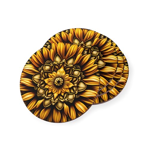 Generic - قواعد اكواب بتصميم زهرة عباد الشمس التجريدية - مجموعة من 4 قواعد اكواب مطاطية عصرية مقاومة للحرارة ومتينة - مجموعة من 4 قطع