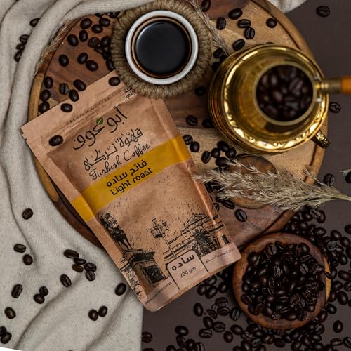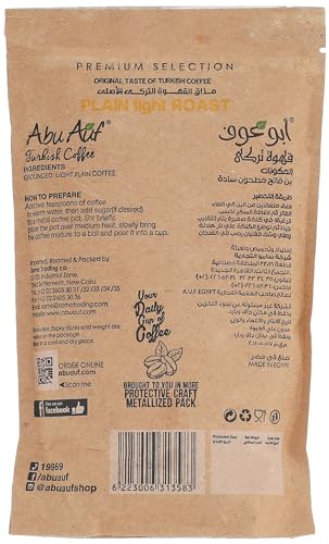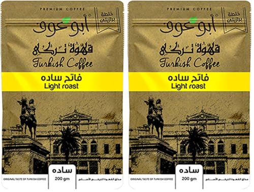 Abu Auf - قهوة تركية خفيفة التحميص من أبو عوف،عبوة 200 جم، (سادة)، قطعتان