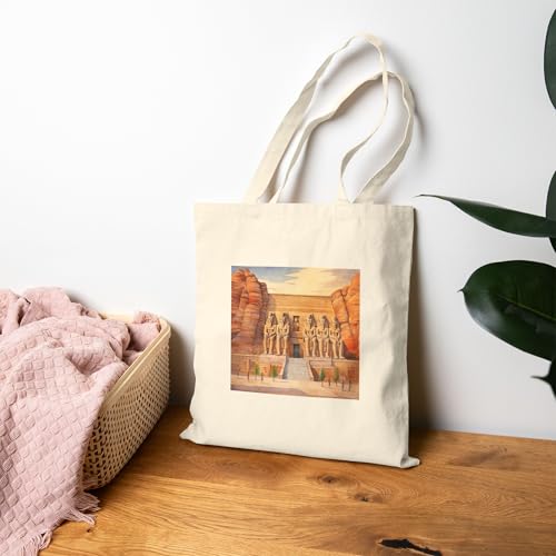 Generic - حقيبة قماش معبد ابو سمبل - حقيبة يد للفن التاريخي الفرعوني - مثالية لمحبي علم الآثار المصرية والسفر مع سحاب - 834
