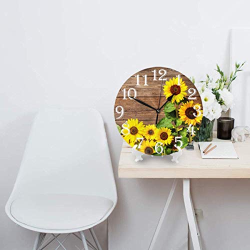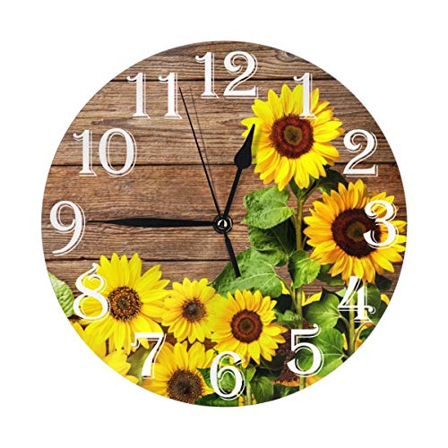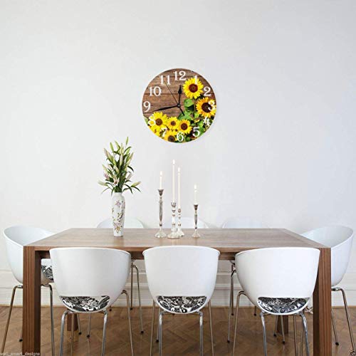 Abucaky - ابوكاك ساعة حائط بتصميم زهرة عباد الشمس الصفراء من هيبستر، ساعة دائرية صامتة تعمل بالبطارية لديكور الحائط للمنزل والمكتب والمدرسة 9.8 انش، خشب، رقمي