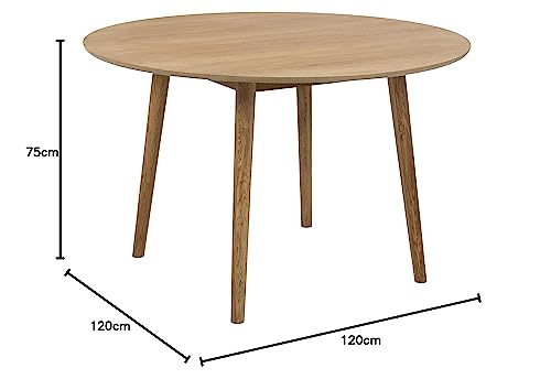 AC Design Furniture - طاولة طعام دائرية بيرنيل تتسع لـ4 أشخاص من خشب البلوط، طاولة خشبية على الطراز الاسكندنافي، طاولة مطبخ لأثاث غرفة الطعام من ايه سي ديزاين فيرنتشر، Ø: 120 × الارتفاع: 75 سم