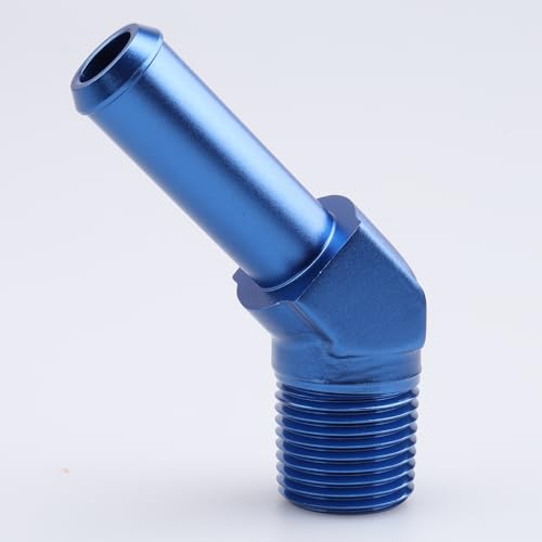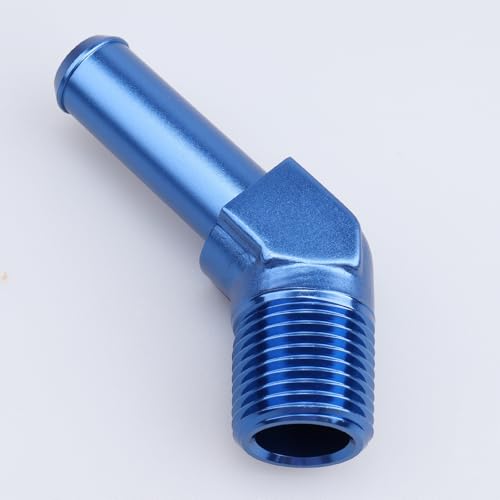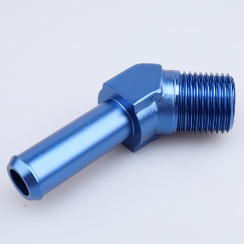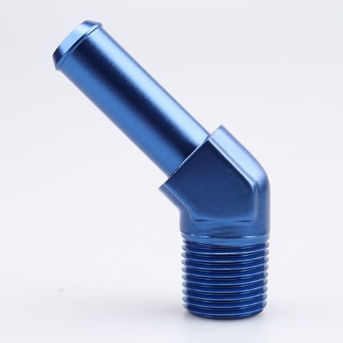 AC PERFORMANCE - وصلة خرطوم ذكر ان بي تي 1.2 سم إلى وصلة أنبوب 45 درجة مصنوعة من ألومنيوم مطلي باللون الأزرق 10AN للتركيب بالضغط على الأنبوب