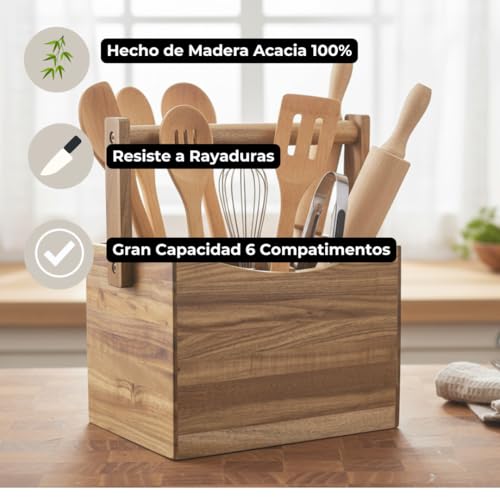 BAUM BROTHERS - حامل لأدوات المائدة من خشب أكاسيا طراز SW-04 من بوم براذرز