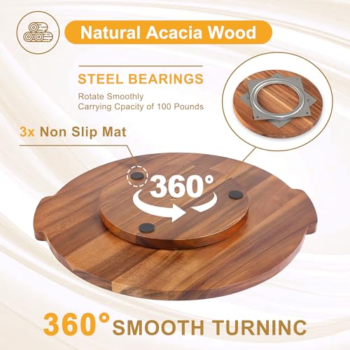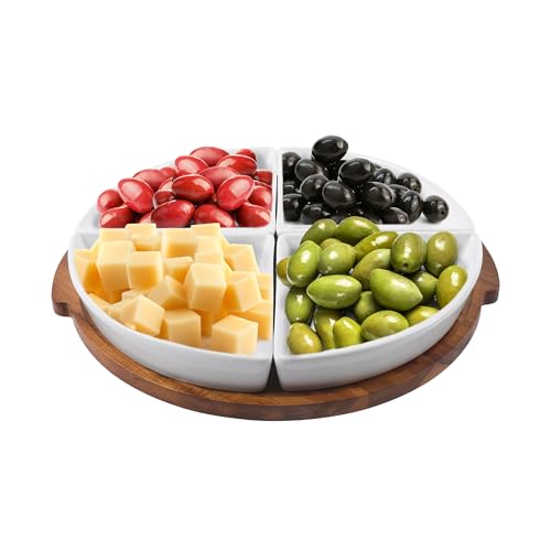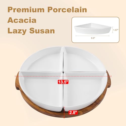 oridom - صينية تنظيم خزانة من خشب اكاسيا ليزي سوزان مقاس 13.5 انش، طبق تقديم ليزي سوزان، مجموعة مقبلات مميزة من البورسلين قابلة للدوران 360 درجة للفاكهة والخضروات والحلوى