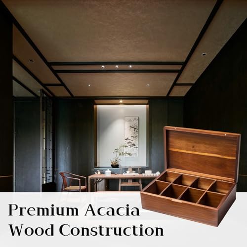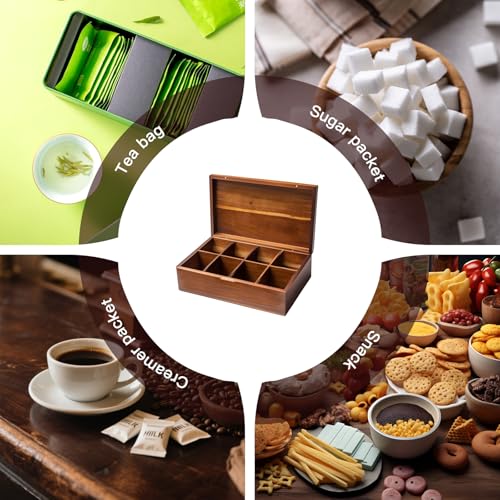 ZHIYUEJING - منظم اكياس الشاي الخشبي من اكاسيا مع غطاء مغناطيسي، منظم صندوق الشاي مكون من 8 مقصورات، حاوية تخزين شاي خشبية لاكياس الشاي ومستلزمات المشروبات.