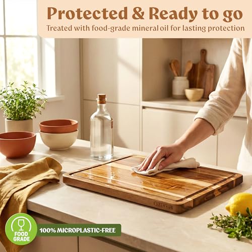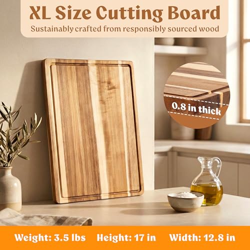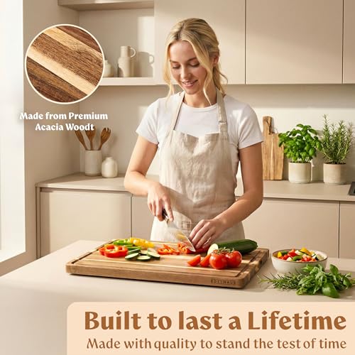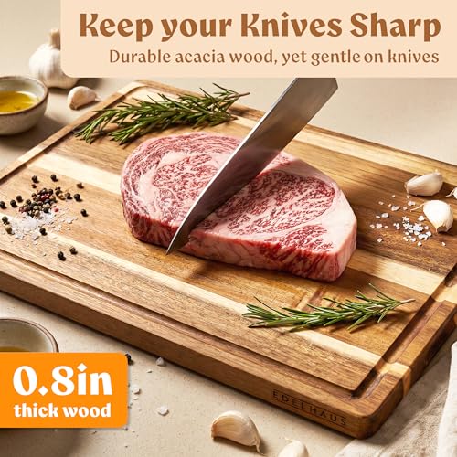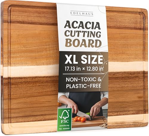 EDELHAUS - لوح تقطيع خشبي من اكاسيا مقاس XXL للمطبخ، لوح تقطيع كبير 17.1 × 12.8 - لوح تقطيع مع اخدود عصير، لوح تقطيع خشبي متين وصديق للسكين