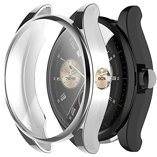Acadeny - جراب حماية من البولي يوريثين الحراري متوافق مع سماعات هواوي ووتش بادز أكاديني بلون فضي وأسود شاشة [ستانلس ستيل] [مضاد للخدش]