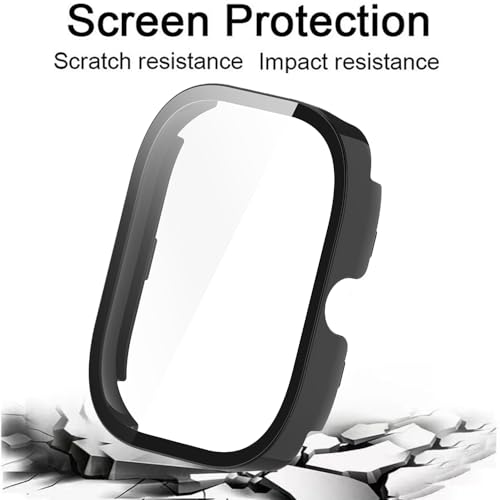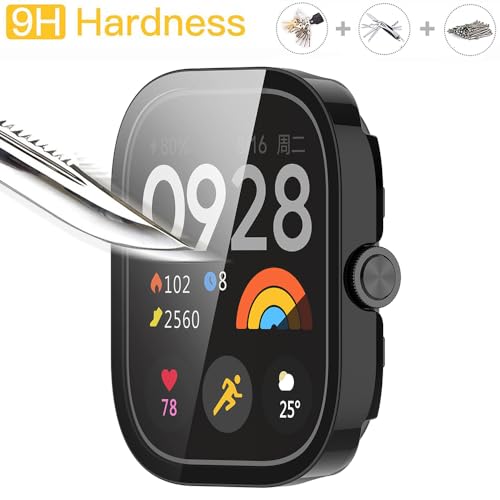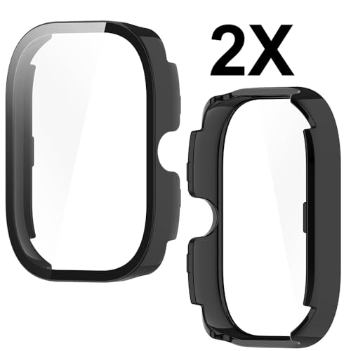 Acadeny - جراب صلب مع شاشة حماية بدرجة صلابة 9 من الزجاج المقوى والبولي كربونات لساعة مي ووتش لايت الذكية من اكانسي، لون أسود