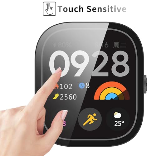 - [تصميم مثالي]: جراب متين للغاية من البولي كربونات + زجاج مقوى مع شاشة حماية، يغطي الحواف الأمامية والمنحنية بالكامل لساعة مي ووتش 4، ويحمي من الخدوش والسقوط والصدمات.
