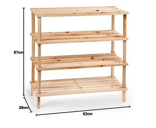 Acan - رف أحذية من 4 طبقات الخشب الطبيعي حامل مثالي للممر أو غرفة النوم مقاس 67 × 63 26 سم - لون طبيعي أكان