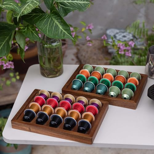 ACBORN - صينية حامل كبسولات القهوة من خشب الأكاسيا متوافقة مع خط نسبريسو الأصلي، منظم وتخزين وحاوية وحامل أكواب الكبسولات لسطح العمل أو الدرج، سعة إجمالية 40 كبسولة، قطعتان