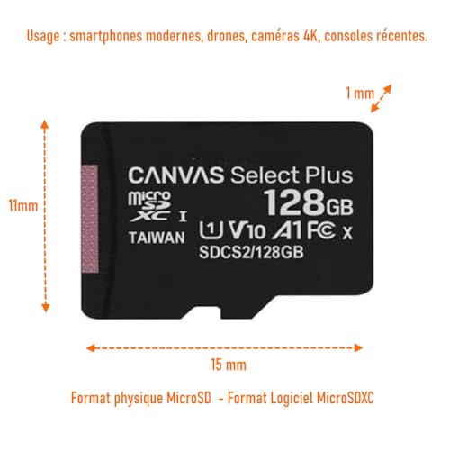 - بطاقة ذاكرة Micro SDXC سعة 128 جيجابايت : تخزن ما يصل إلى 60000 صورة JPG أو 32000 أغنية ام بي 3 أو 2400 تطبيق / لعبة.