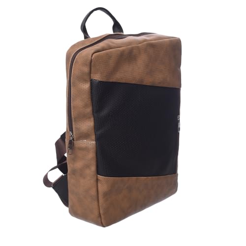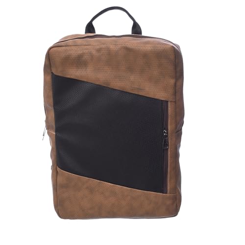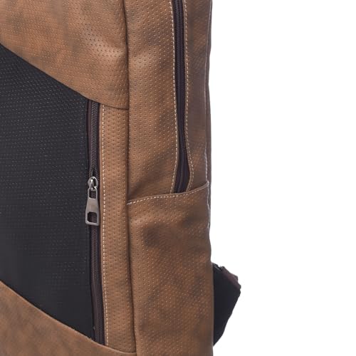 Accelerate - شنطة ظهر جلدية بتصميم منقط للكمبيوتر المحمول مقاس 15.6 بوصة من اكسيليريت بلونين مع جيب أمامي عمودي | كمبيوتر محمول متين متوافقة أجهزة ماك بوك واللاب توب بني وأسود للرجال