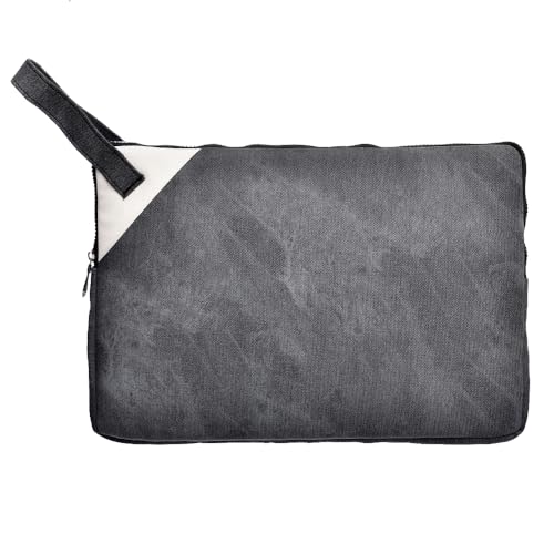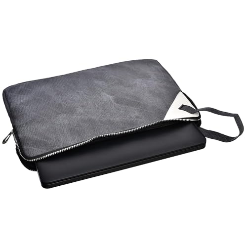 Accelerate - حافظة فاخرة من الجلد منقوشة بالرمادي والأسود 15 - 15.6 بوصة مع جيب بسحاب وحزام جانبي بتصميم نحيف متوافقة أجهزة ماك بوك واللاب توب اكسيليريت رمادي اسود للبالغين الجنسين