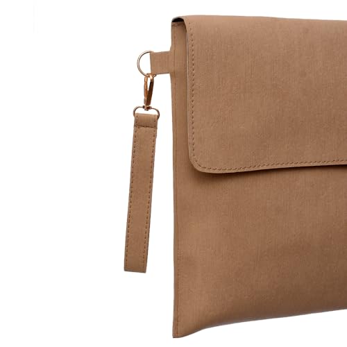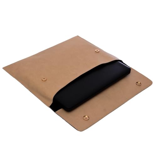 Accelerate - جراب لاب توب جلد لينيار لايت 15-15.6 بوصة مع مشبك كبس مغناطيسي وحزام قابل للإزالة من اكسيليريت تصميم رفيع متوافق أجهزة ماك بوك واللاب بلون بيج