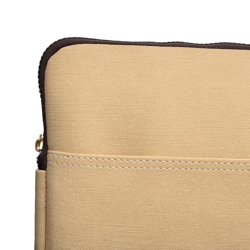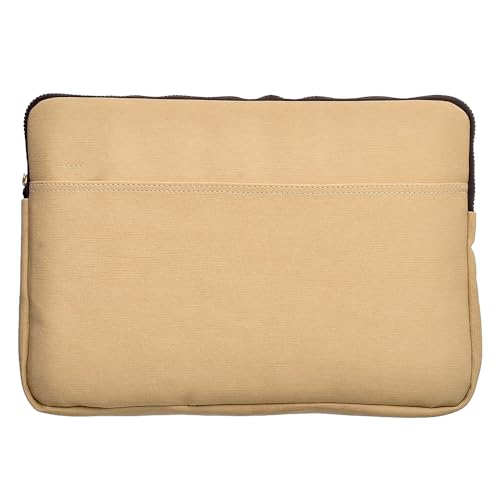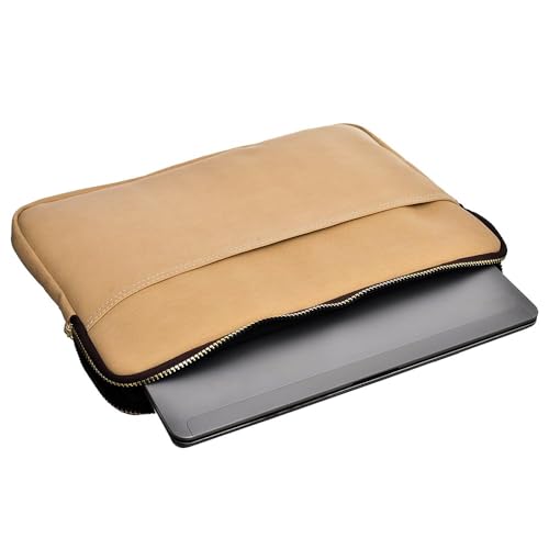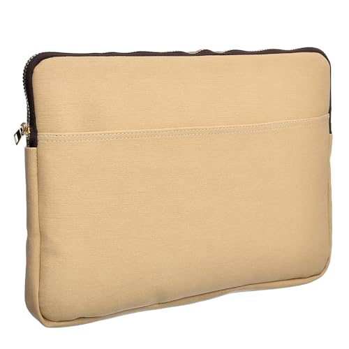 Accelerate - حافظة لاب توب من الجلد بإغلاق بسوستة بتصميم مزود بجيب أمامي اكسيليريت، شنطة رفيعة لماك بوك وأجهزة مقاس 15-15.6 بوصة، بيج فاتح