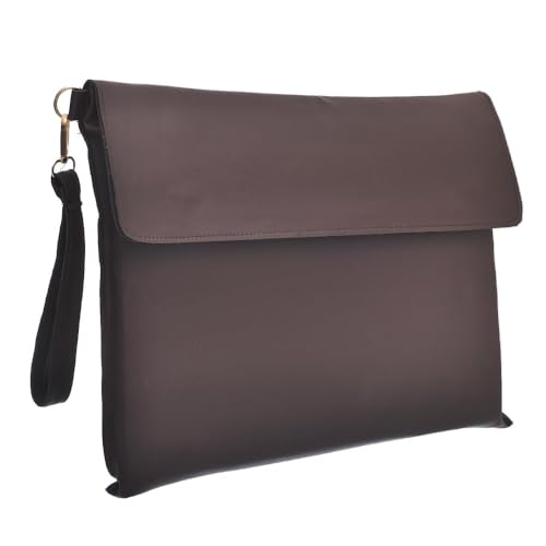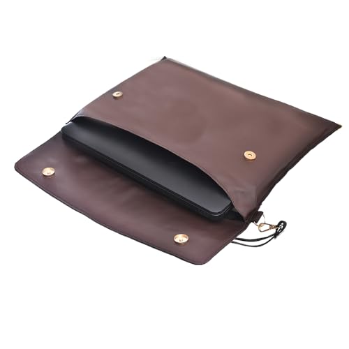 accelerate - حافظة لاب توب من الجلد بلون بني غامق سادة مقاس 15-15.6 بوصة مع مشابك كبس مغناطيسية وحزام قابل للإزالة، شنطة لاب توب بتصميم نحيف متوافقة مع أجهزة ماك بوك واللاب توب من اكسيليريت
