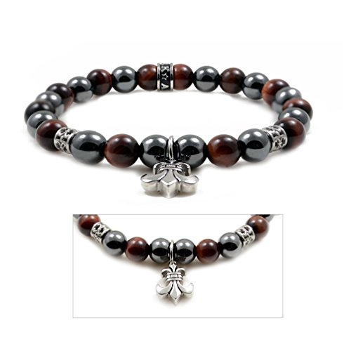 Accents Kingdom - Accents Kingdom Fleur De Lis Magnetic Bracelet Red Tiger Eye Bead Hematite Magnetic Therapy Bracelet