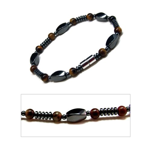 Accents Kingdom - اكسنتس كينغدوم سوار خرز عين النمر المغناطيسي للرجال من الهيماتايت 8.5 انش حجر