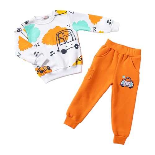 Access - طقم بيجامة قطن مكون من سويت شيرت باكمام طويلة وبنطلون مطبوع عليه سيارة للاولاد من قطعتين، متعدد الالوان، لعمر 9-12 شهر