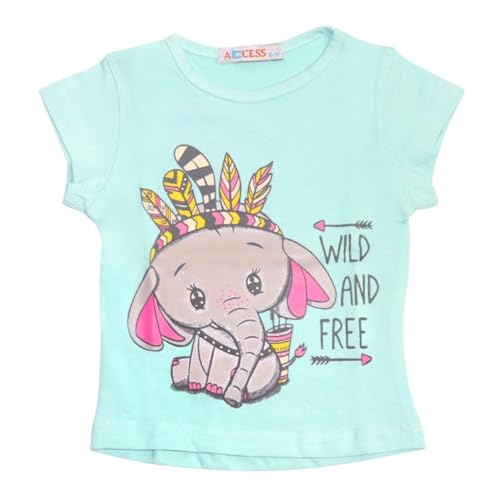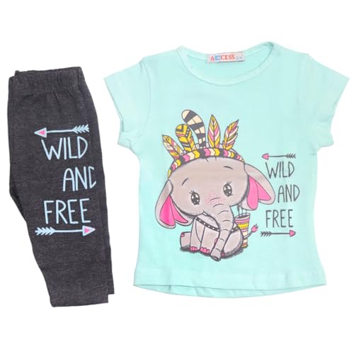 Access Kids - بيجامة قطن مكون طقم من قطعتين من تيشرت نصف كم وبنطلون بطباعة فيل للبنات من اكسيس - متعدد الألوان - لعمر 6 -9 أشهر
