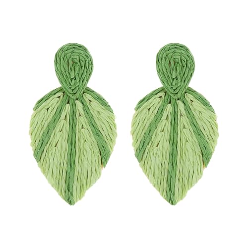 Generic - اكسسوارات - اقراط بوهيمية على شكل ورقة شجر مع تفاصيل خوص مثالية لمحبي الفن والازياء الصديقة للبيئة