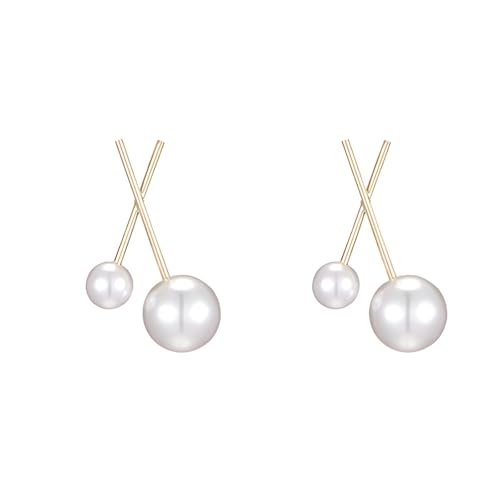 Generic - اكسسوارات - اقراط لؤلؤ ابيض انثوية مع دلاية من اللؤلؤ الصناعي، تصميم متقاطع واحجار زركونيا لامعة، مثالية للنساء اللواتي يبحثن عن مجوهرات كلاسيكية وعصرية