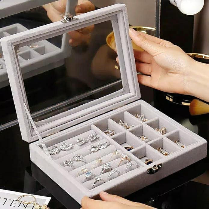 - تنظيم ذكي خالٍ من الفوضى: 8 مساحات تخزين و9 مساحات تخزين للخواتم، مما يحافظ على مجوهراتك منظمة.