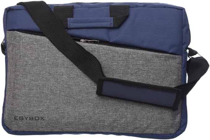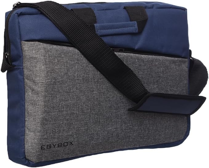 Generic - شنطة لابتوب كلاسيكية من القماش بسوستة ايجي بوكس رو من اكسيسوريز شوب، جيب أمامي بسوستة وحزام كتف لحماية اللابتوب، لون رمادي كحلي