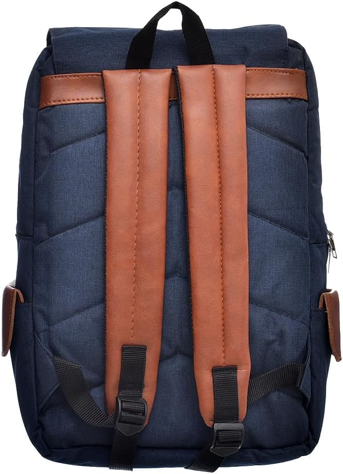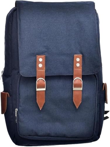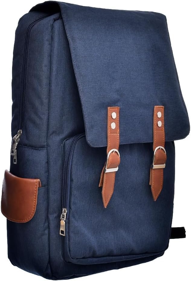 Generic - شنطة ظهر قماشية بتصميم كلاسيكي وجيب خارجي بسوستة لحماية اللاب توب والتابلت من أكسيسوريز شوب، كحلي وجملي