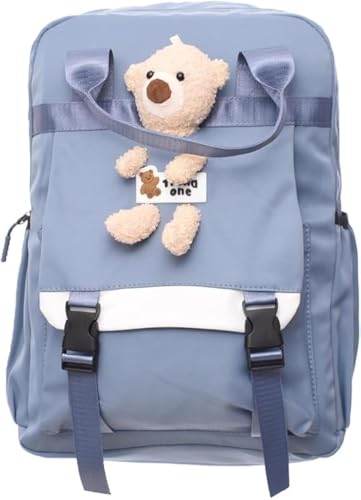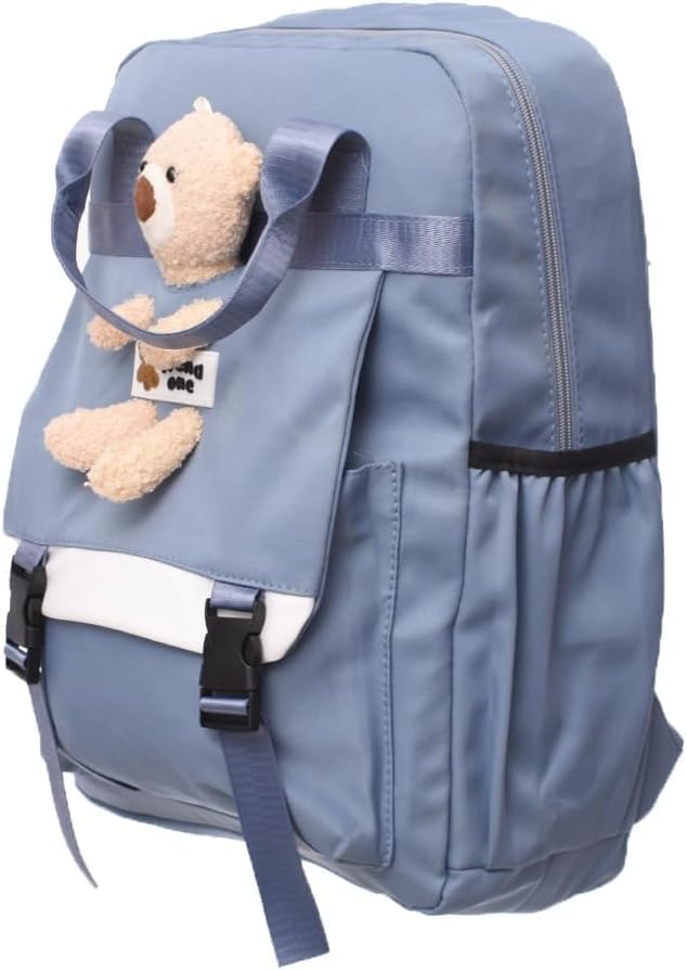 Generic - شنطة ظهر قماشية كبيرة مزينة بدبدوب ومزودة بسوستة وجيب أمامي وحاملي زجاجات للأطفال من الجنسين - لون كحلي من اكسسيسوريز شوب