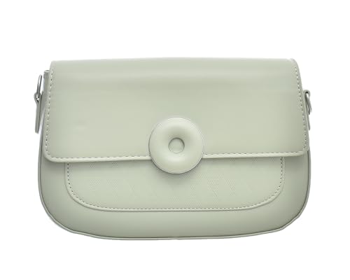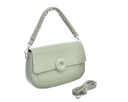 Generic - شنطة يد جلدية للنساء من اكسيسوريز شوب، متوسطة الحجم بتصميم رائع مع مشبك معدني وحزامين مختلفين - برتقالي أخضر مينت وفضي
