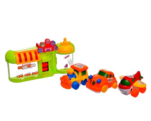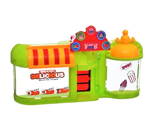 Generic - مجموعة ألعاب المدينة الإبداعية البلاستيكية المتوسطة بتصميم مذهل مع مطعم بلاستيكي متوسط وسيارة صغيرة للأطفال من اكسسوريز شوب، 4 قطع - ألوان متعددة