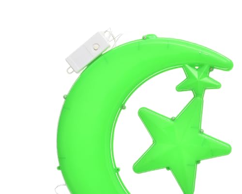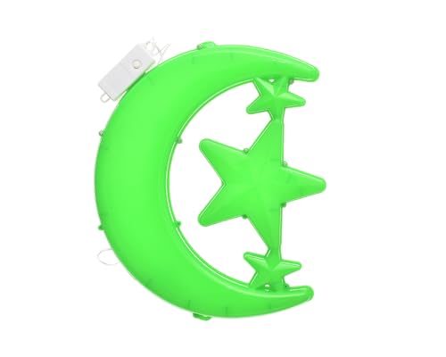 Generic - مصباح ليد بتصميم هلال رمضان متوسط الحجم للزينة، يحتوي على ثلاث نجوم صغيرة مع إضاءة دافئة وصندوق كهرباء بلاستيك يضيف المزيد من السعادة للديكور من اكسيسوريز شوب - لون أخضر