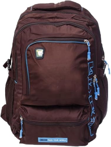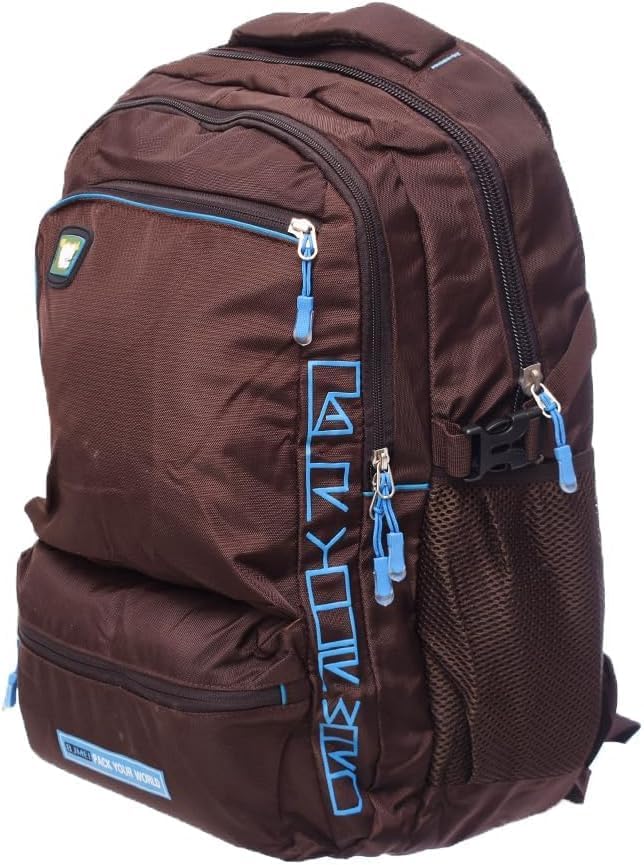 Generic - شنطة ظهر عصرية مقاومة للماء مع جيوب أمامية بسوستة وجيوب جانبية للبالغين- لون بني وأزرق