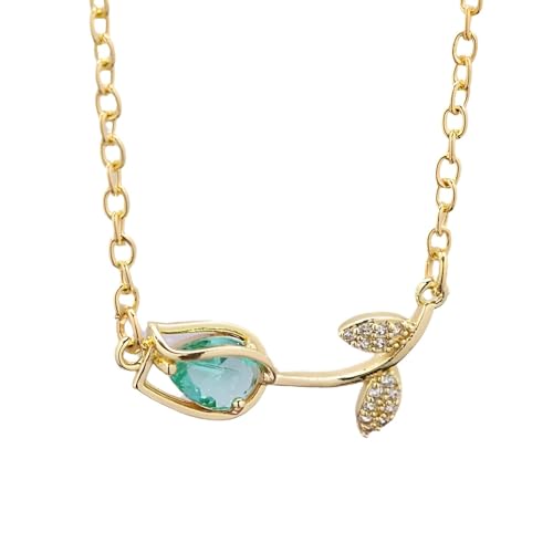 Generic - أكسسوار - عقد بتصميم زهرة التوليب المعاصرة مع هيكل من الفولاذ المقاوم للصدأ ومعطف ذهبي وتفاصيل زرقاء معقدة وسلسلة متصلة رمزية، اختيار هدية مدروس وأنيق