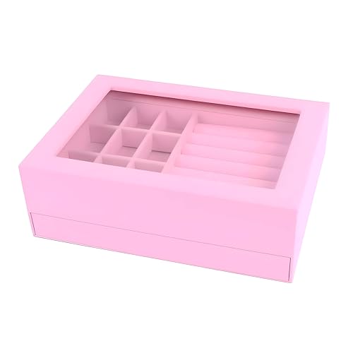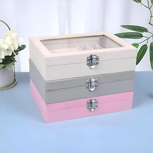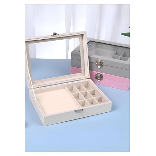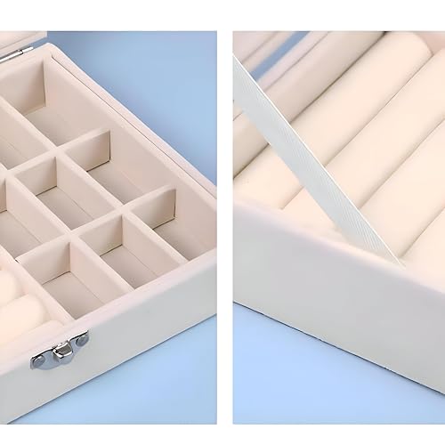 - يتميز صندوق تخزين المجوهرات بتصميم حديث فاخر وتسعة مقصورات منفصلة، مما يوفر طريقة راقية لتنظيم الأقراط والقلائد والخواتم وغيرها من الاكسسوارات الصغيرة، مع ضمان سهولة الوصول إليها وعرضها بشكل رائع.