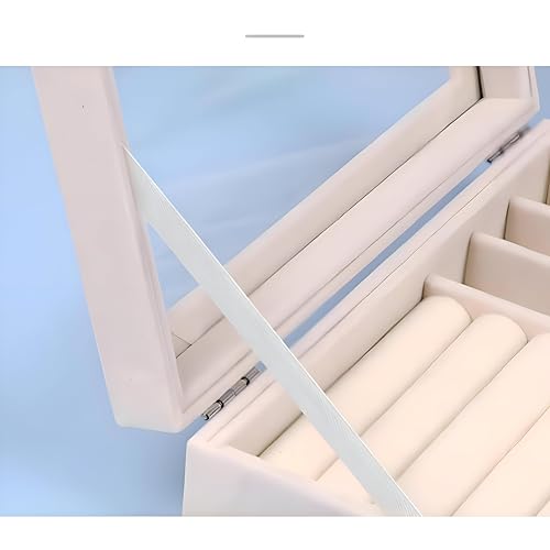 - يتضمن الجزء الداخلي الواسع مساحات تخزين محددة لأنواع المجوهرات المختلفة كالخواتم والأقراط والأساور والساعات، مما يسمح للمستخدمين بفصل قطعهم وتخزينها بشكل أنيق، مما يقلل من الفوضى ويمنع التشابك أو الخدش.